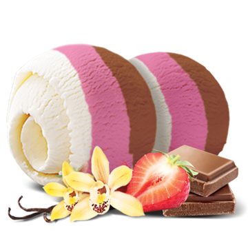 Product Descriptor:Vanilla, Strawberry & Chocolate Flavoured ice cream swirled together