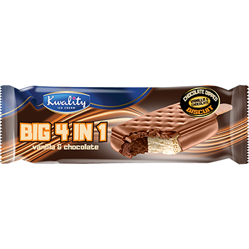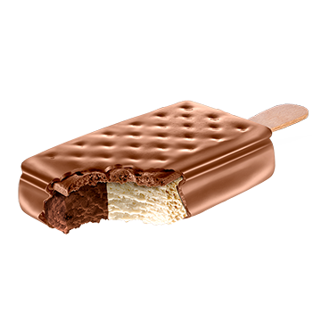 Product Descriptor: Vanilla and Chocolate Flavoured Semi Ice Milk with Biscuit on One Side, & Dipped in Chocolate.