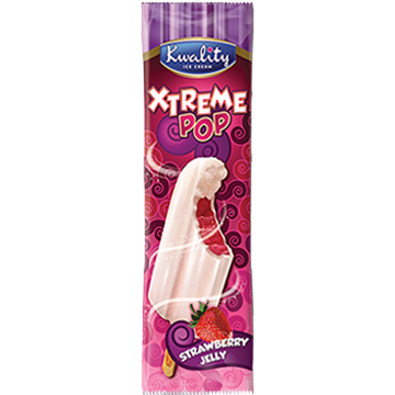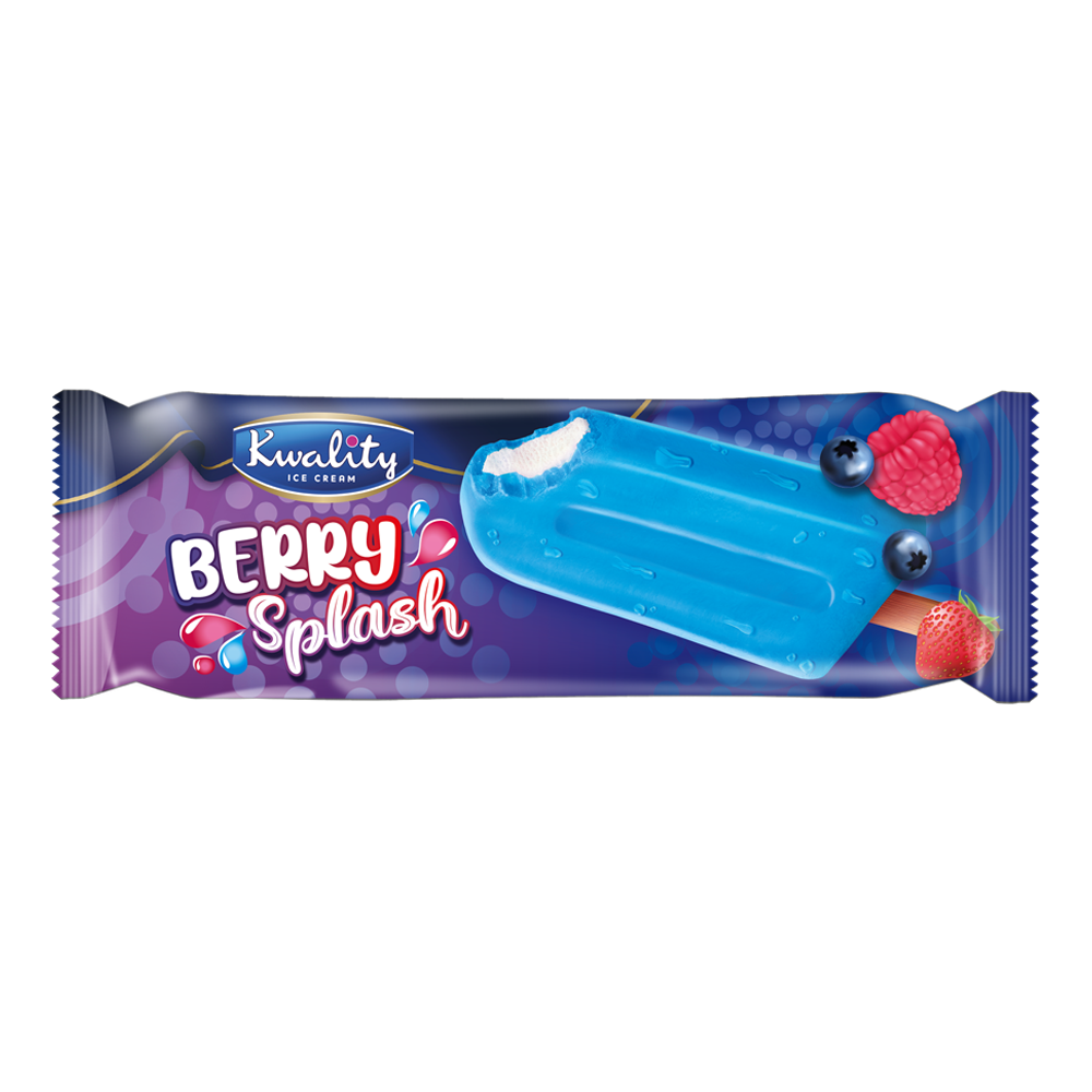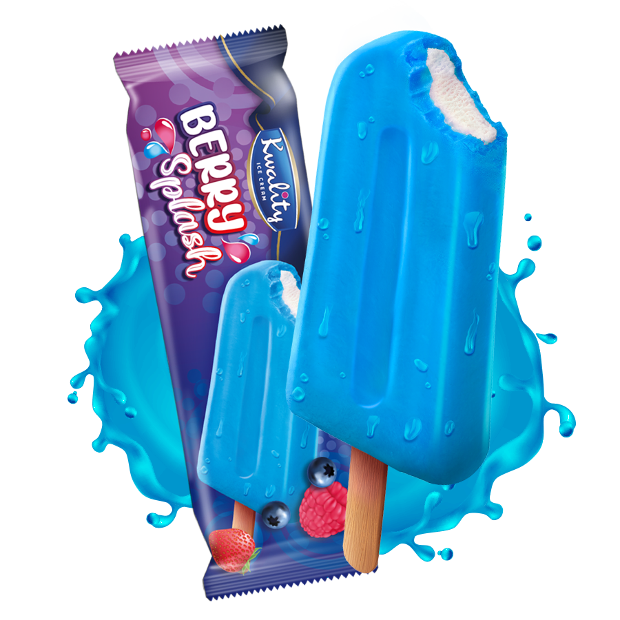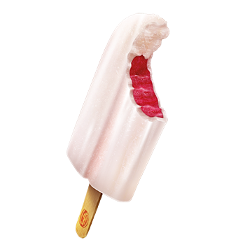 Product Descriptor: STRAWBERRY FLAVOURED SEMI ICE MILK CORE WITH RASPBERRY & BLUEBERRY FLAVOURED WATER ICE SHELL.